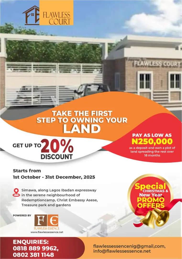 Flawless Essence Nigeria Limited the promoter of flawless homes helps you secure affordable, verified land in Simawa and comfortable homes across Ogun State.